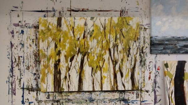 New tree painting by Holly Van Hart – Slipping Between the Notes – 36 x 48 inch acrylic painting on canvas